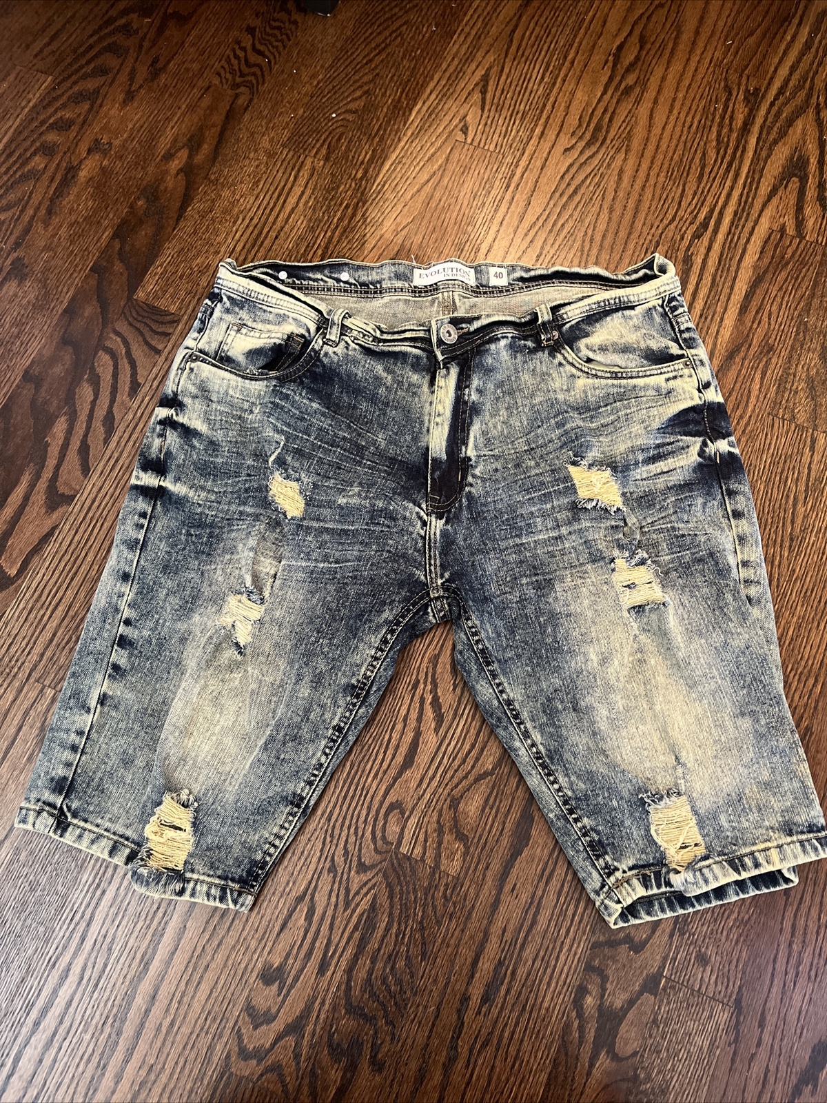 Grab these stylish blue denim shorts for your summer wardrobe! With a size 40 fit and trendy acid wash, they bring a touch of casual cool to any outfit. The distressed details add character, making these pre-owned gems a must-have for comfort and style.