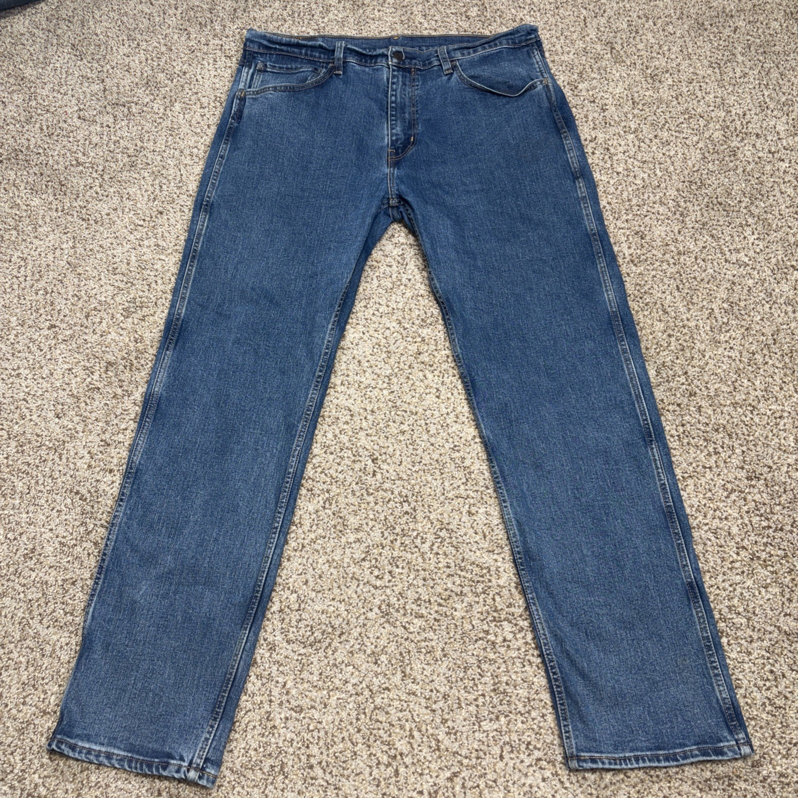 These Levi's Workwear Fit denim jeans are perfect for anyone seeking style and comfort. With a relaxed fit in a classic blue, they have a waist measuring 37 inches and an inseam of 31.5 inches, making them an easy match for your favorite shirts and tees. Crafted from a blend of cotton, polyester, and spandex, they provide just the right amount of stretch for everyday wear.
