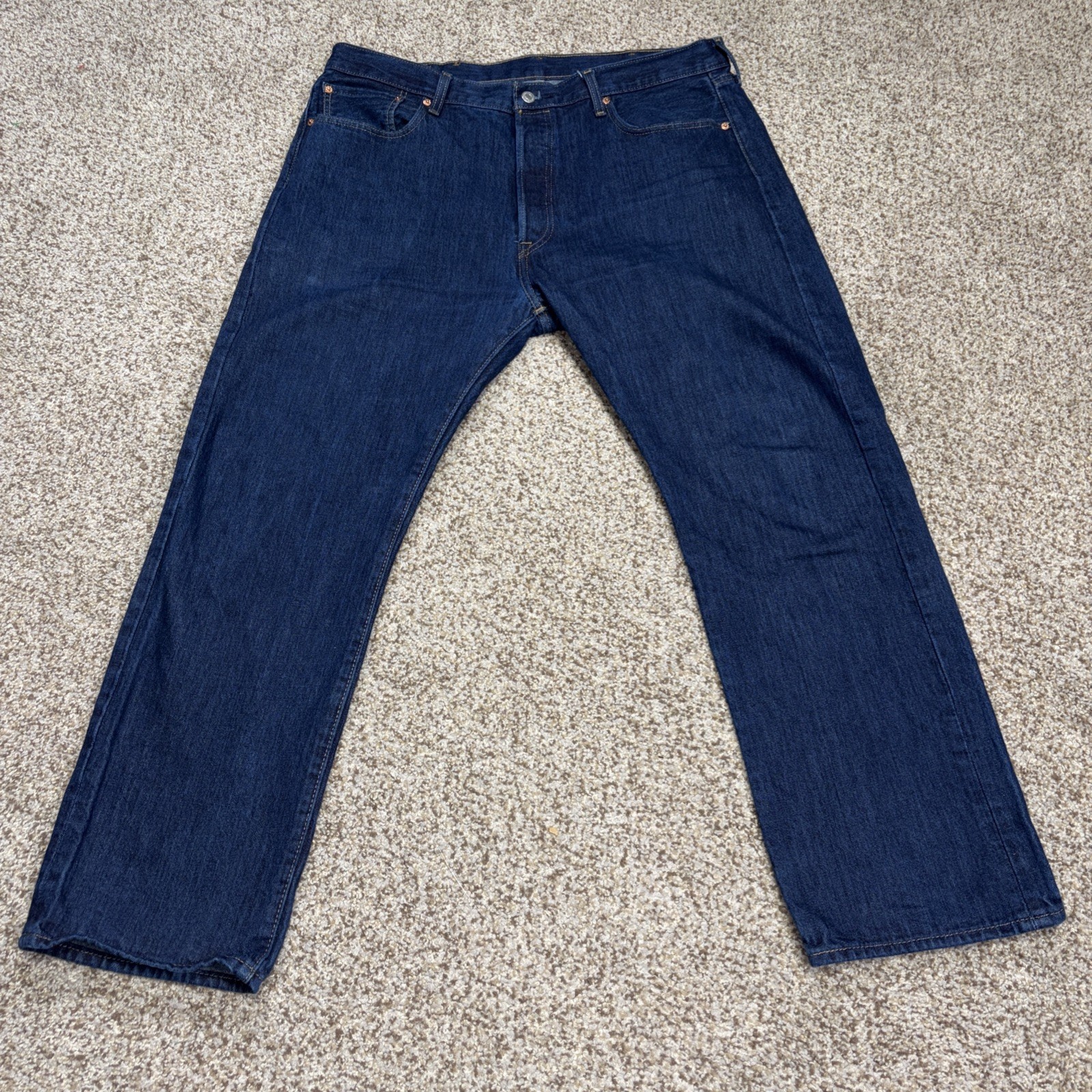 Score a classic with these Levi's 501s! Featuring a comfortable 38-inch waist and a 29-inch inseam, they're perfect for a relaxed fit while maintaining that timeless straight-leg style. Plus, the dark denim is not just stylish, it goes with everything. Don't miss out on these versatile jeans that have been cleaned and are ready for a new adventure!