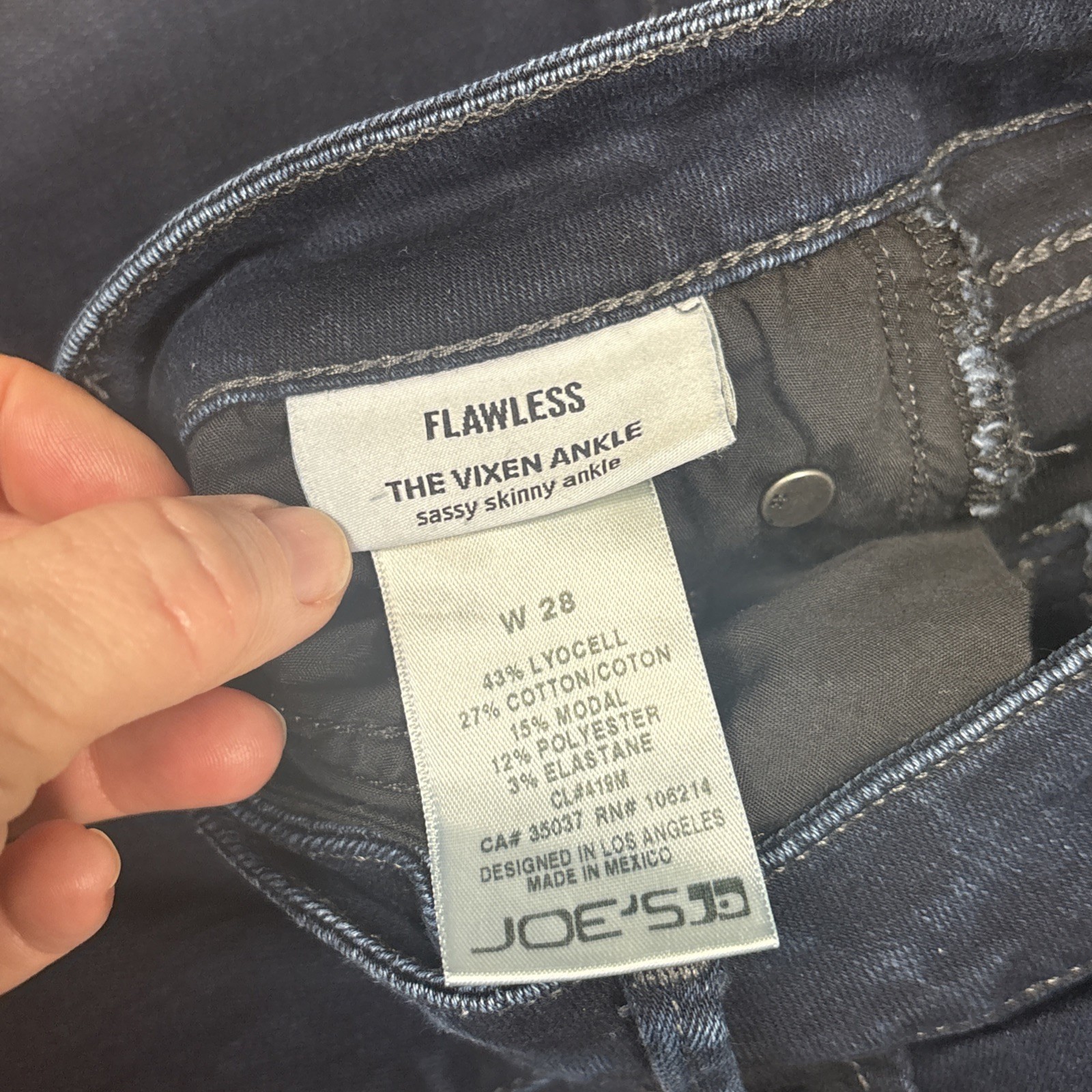 Joe's Jeans Women's Flawless Vixen Skinny Ankle 28 X 26.5 Dark Wash. Spot om front of jeans barely noticeable as shown in photos