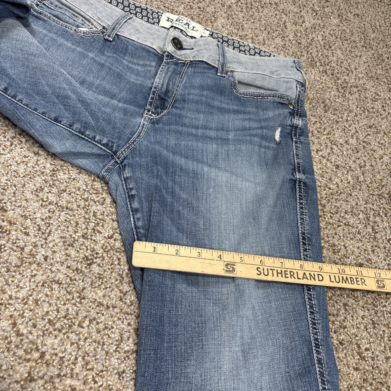 Ariat Real Denim Boot Cut Slit Hem Raw Hem Jeans Capitola Women Size 31S Fits 33x30