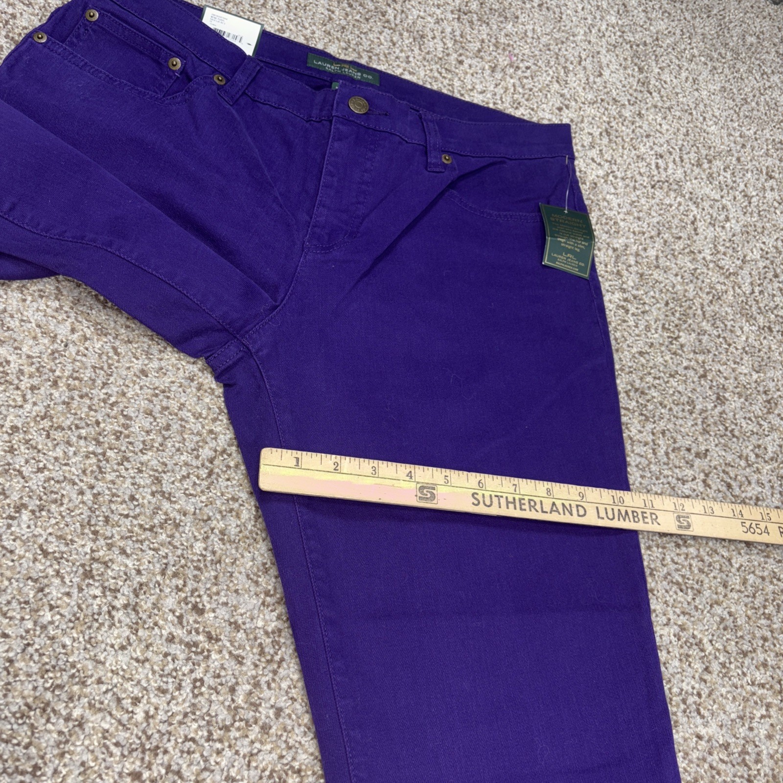 Lauren Ralph Lauren Modern Straight Slimming Fit Purple Denim jeans Size 12 fits 33 x 32 NEW