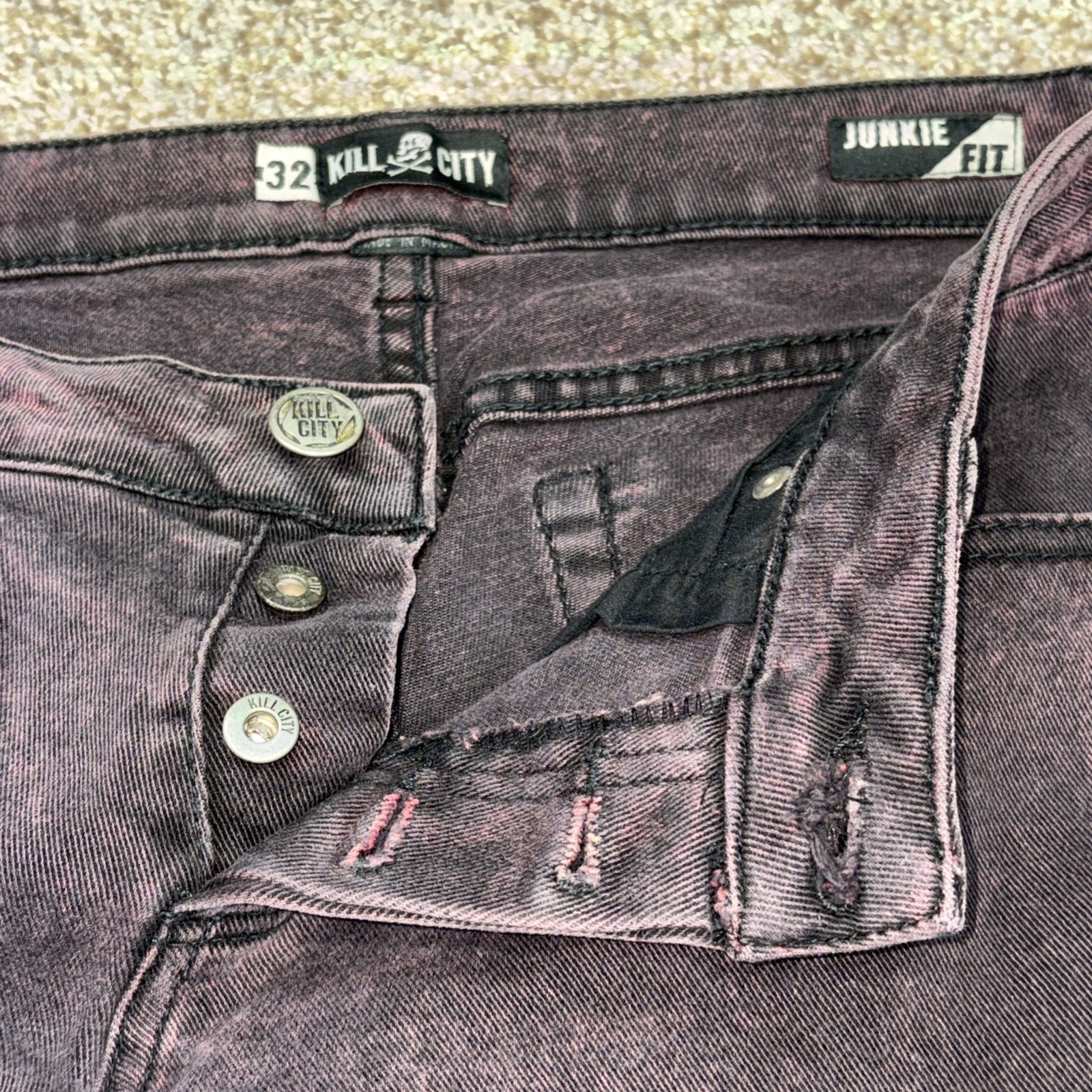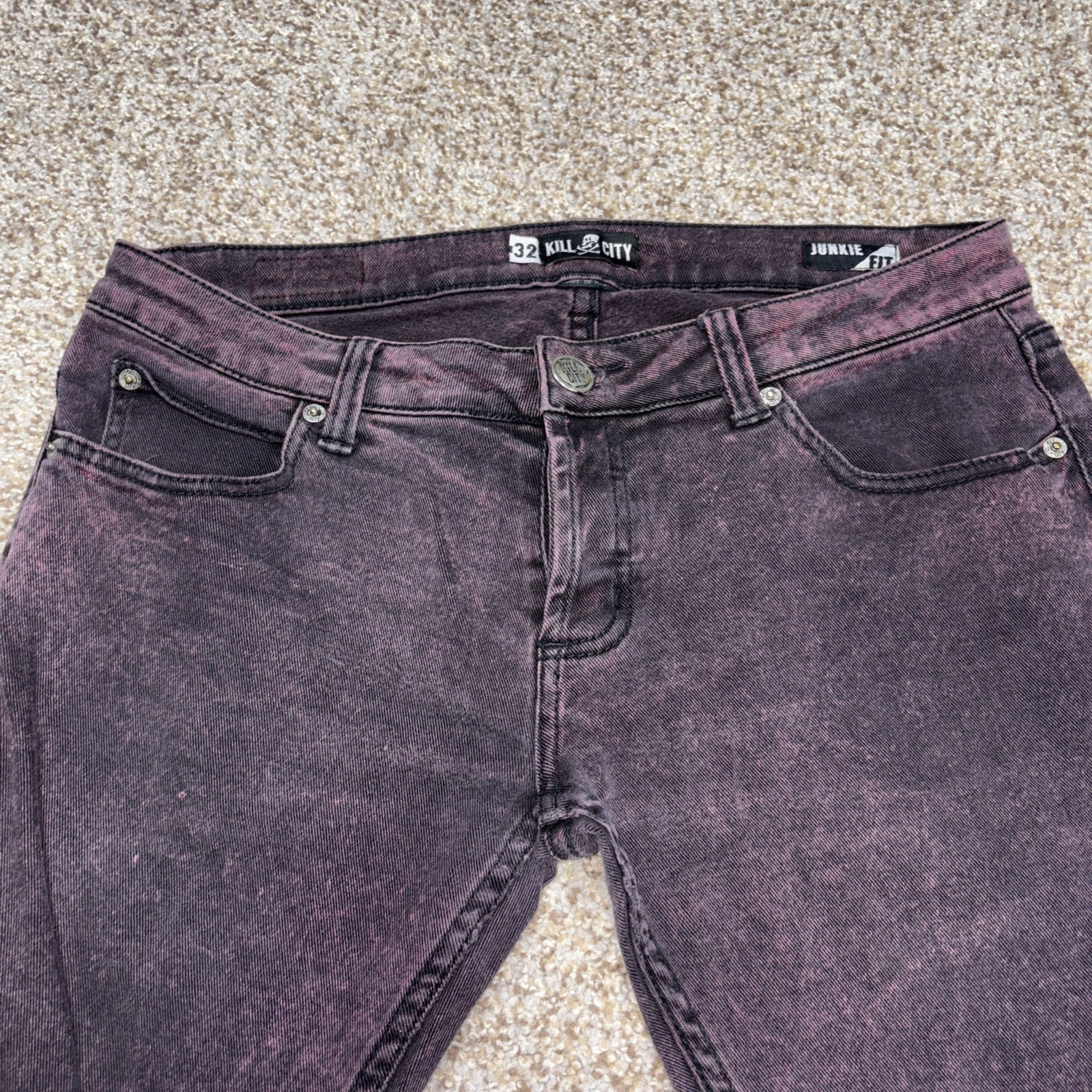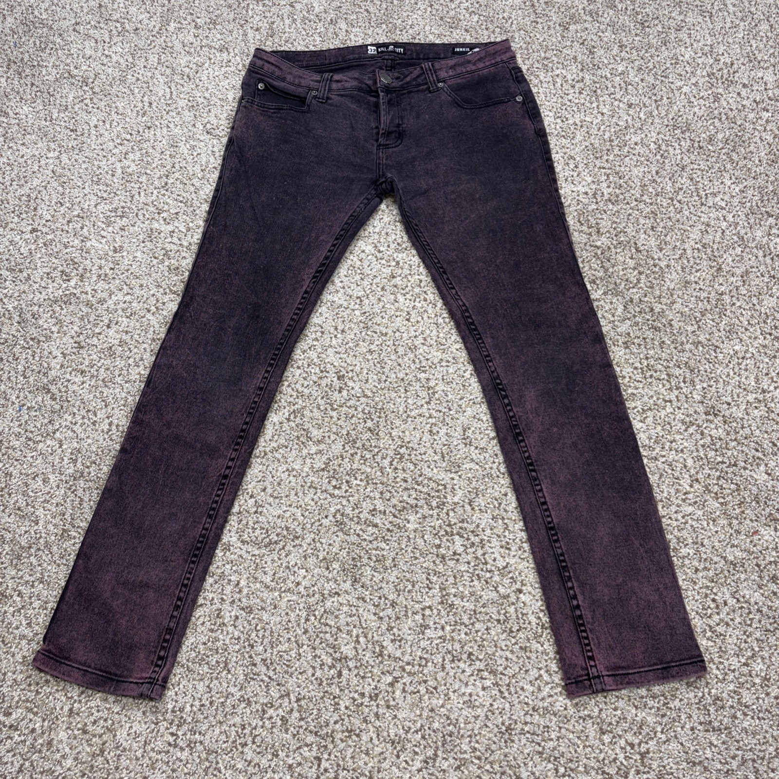 Kill City Junkie Fit Black Purple Wash Denim Jeans 32 X 30 Mens