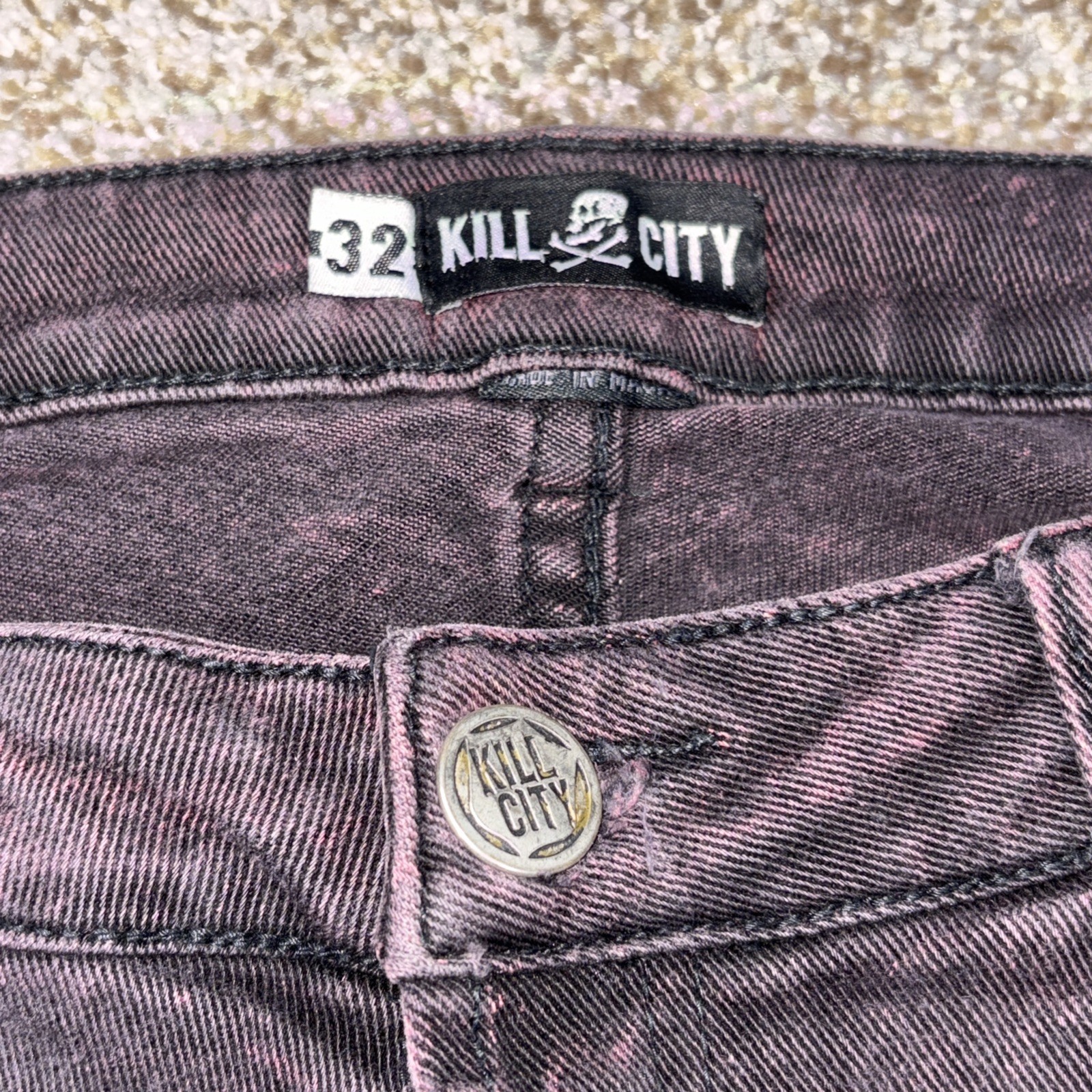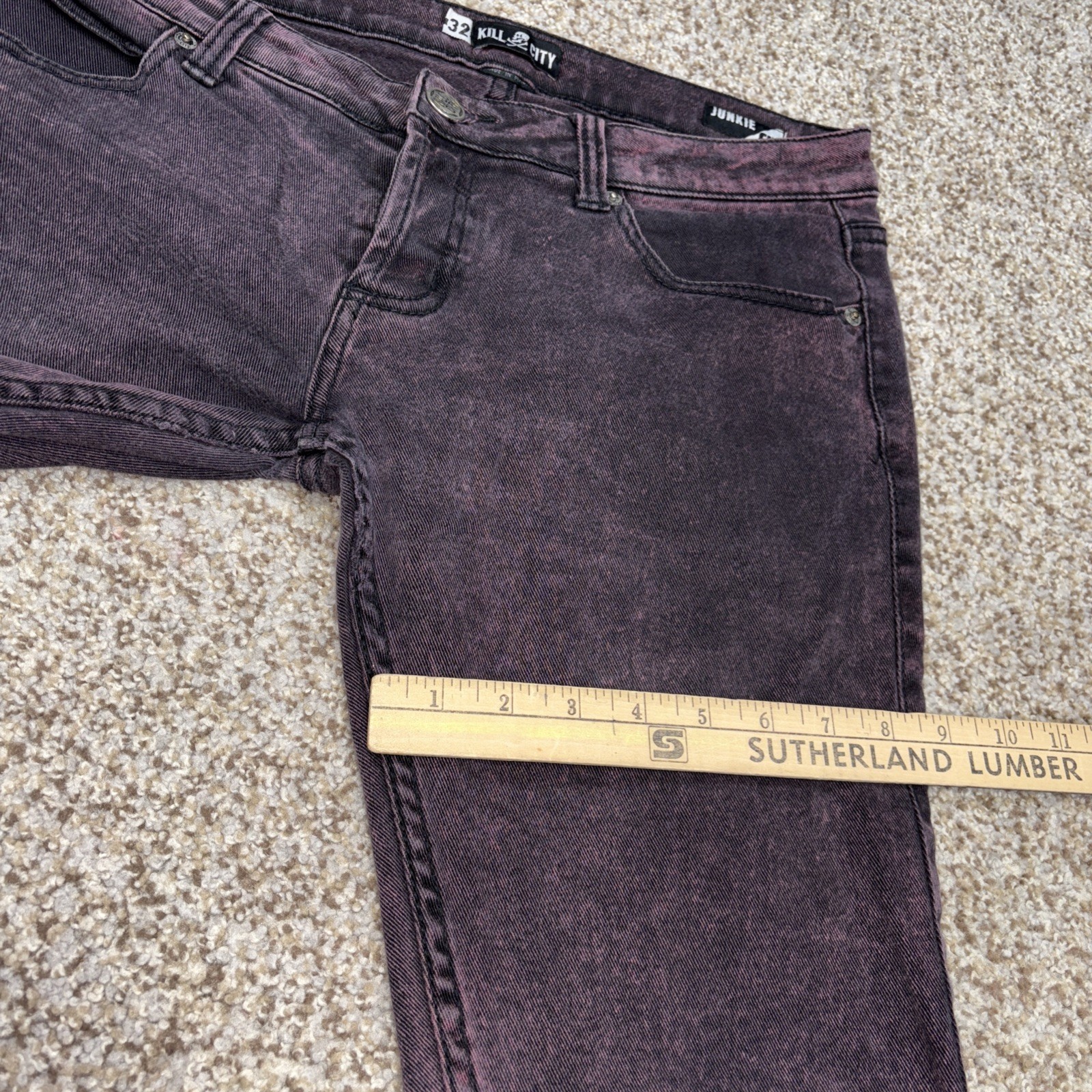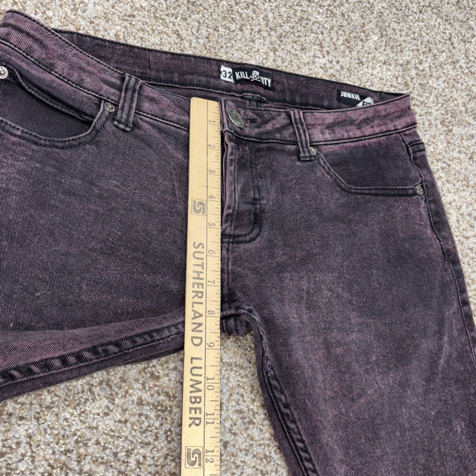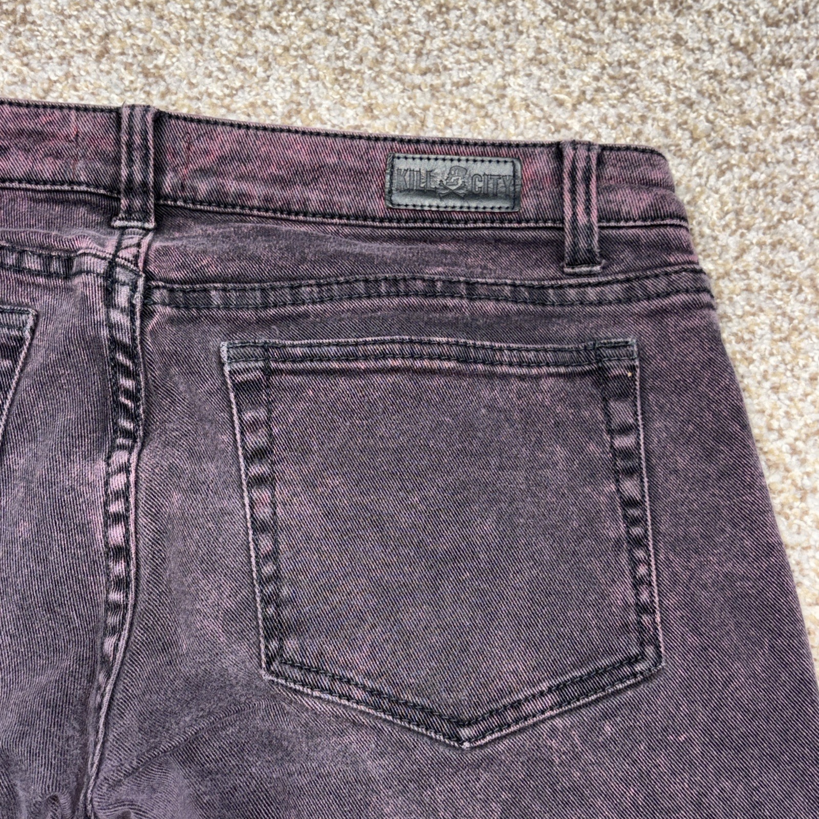 Kill City Junkie Fit Black Purple Wash Denim Jeans 32 X 30 Mens