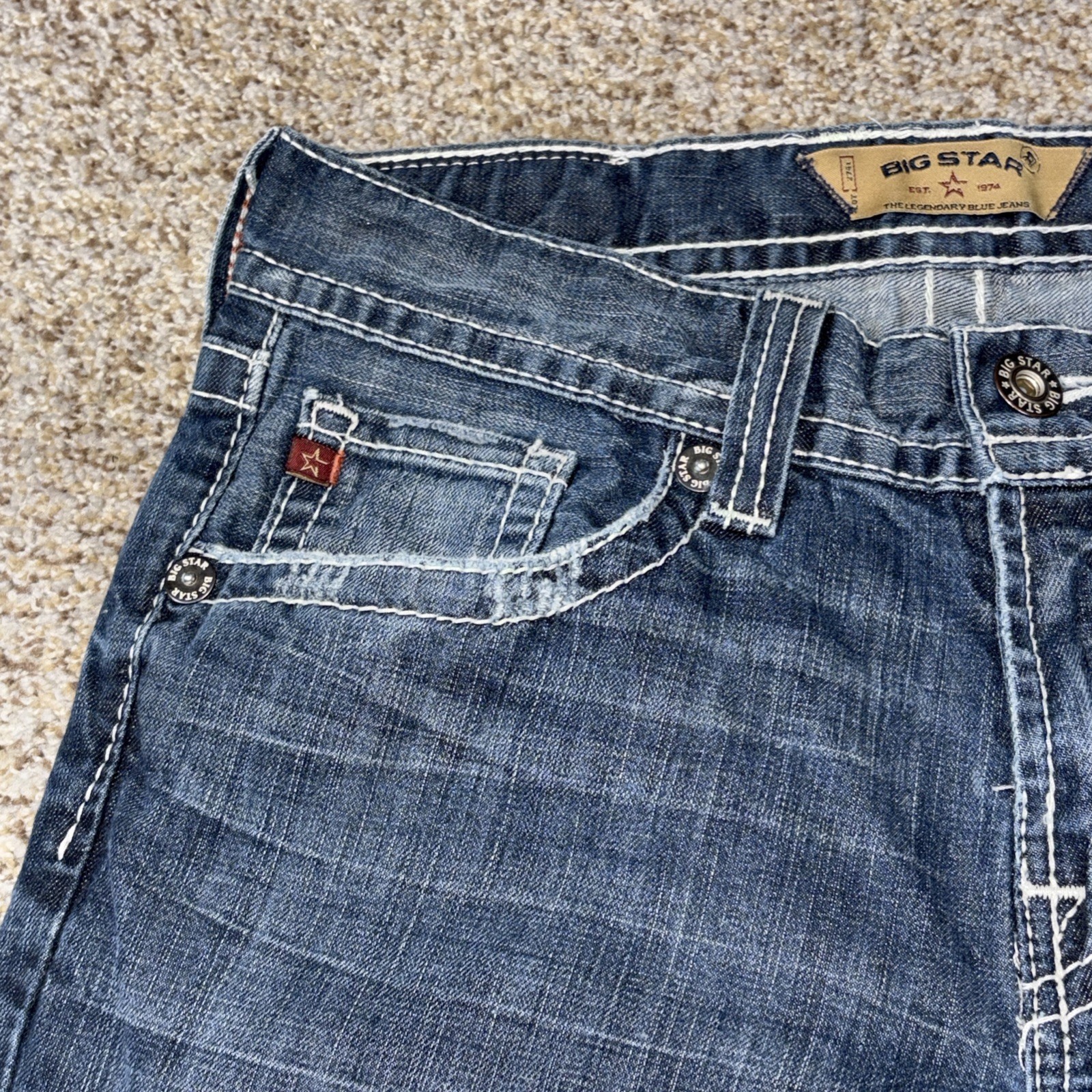 Big Star Union Straight Denim Jeans Mens 32L Distressed Fits 31 X 32
