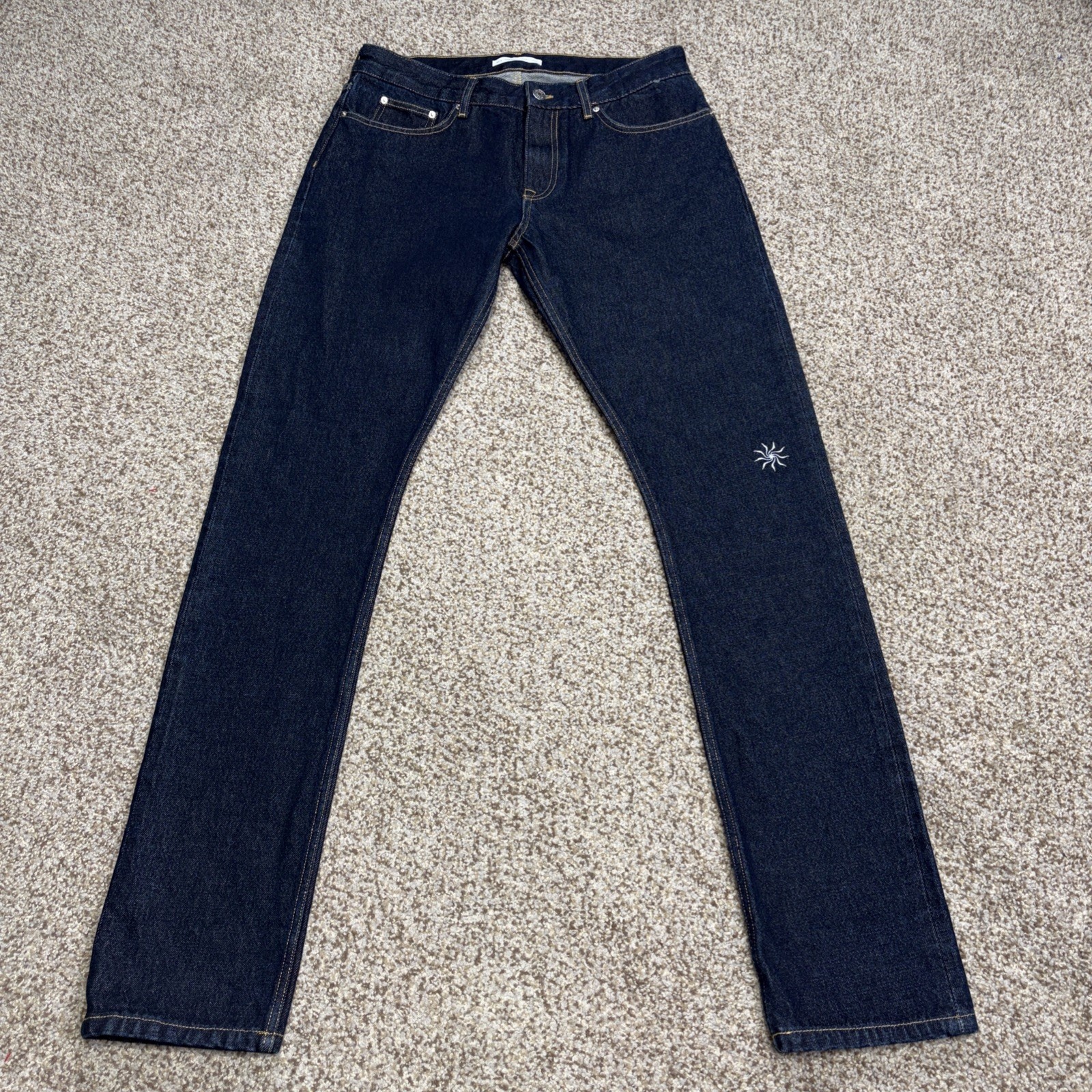 Dr. Woo / Nyden Jeans Mens 33 X 35 Blue Selvedge Denim Straight Leg Embroidered New without Tags