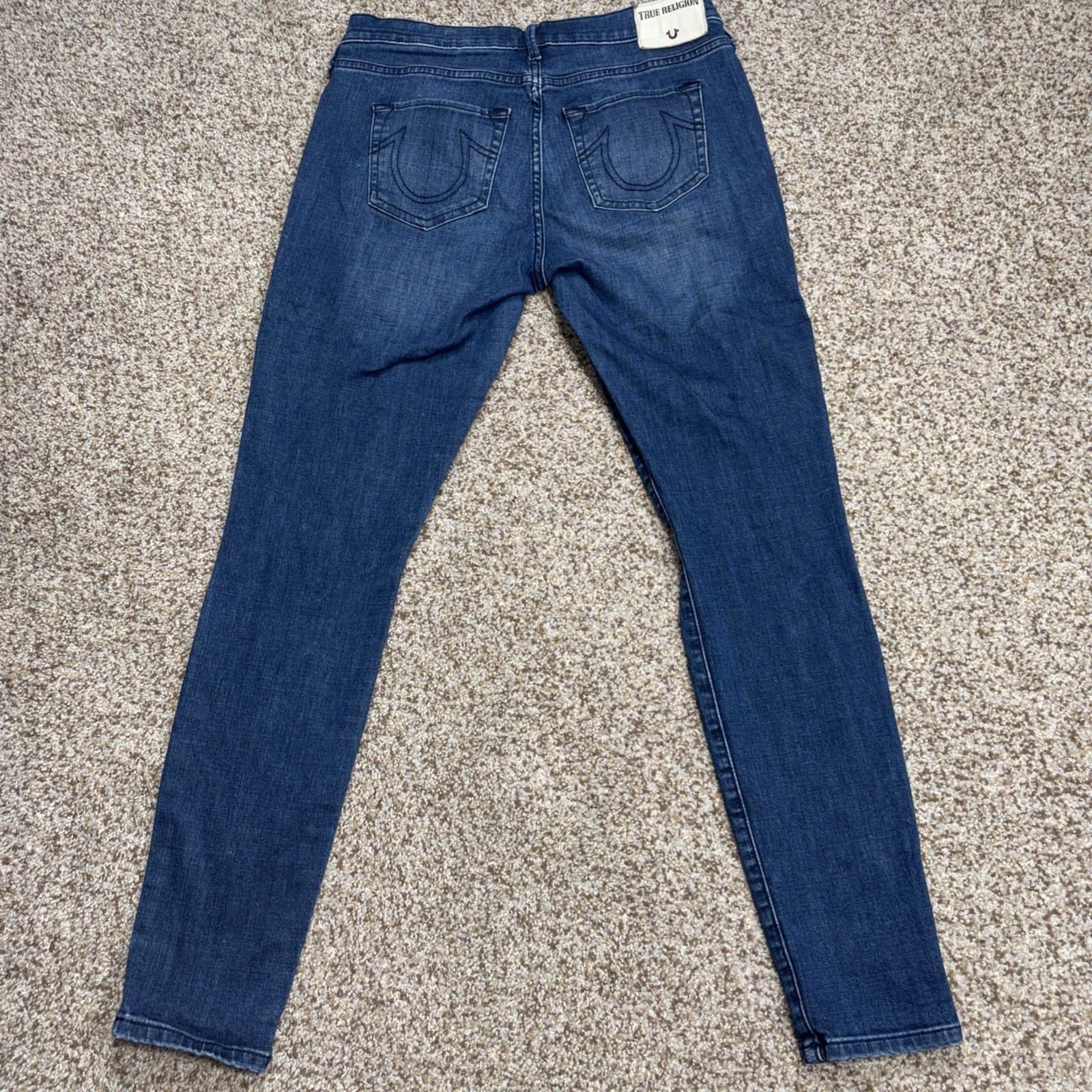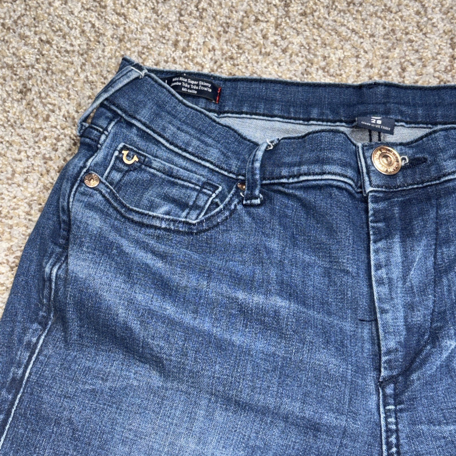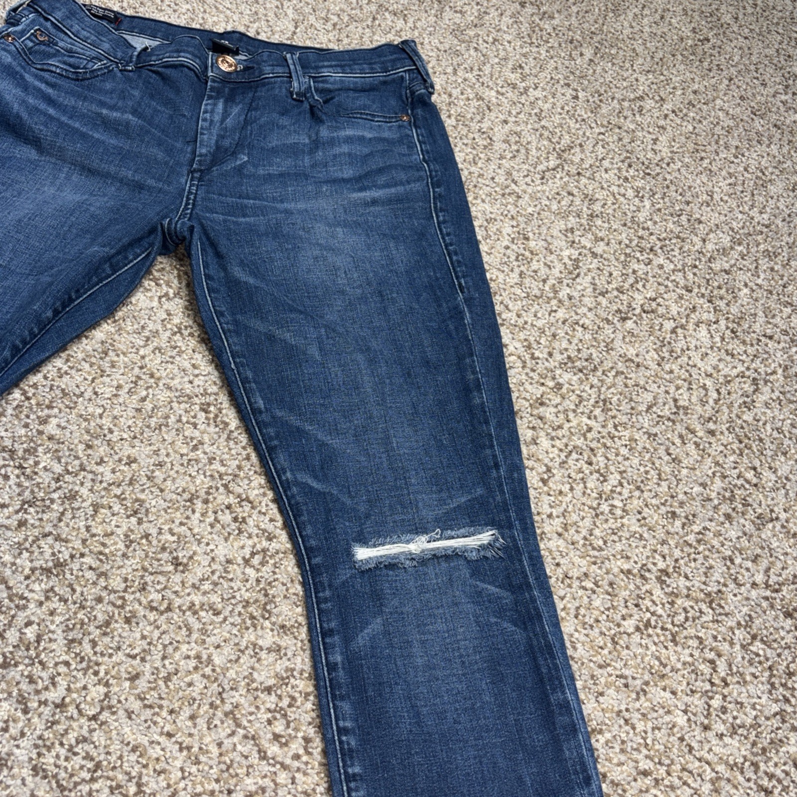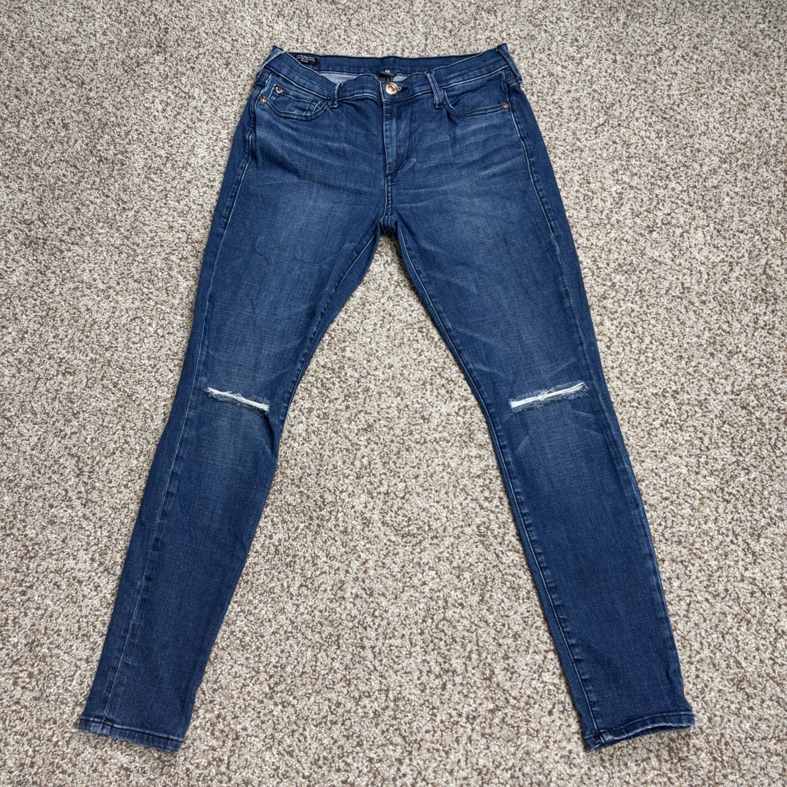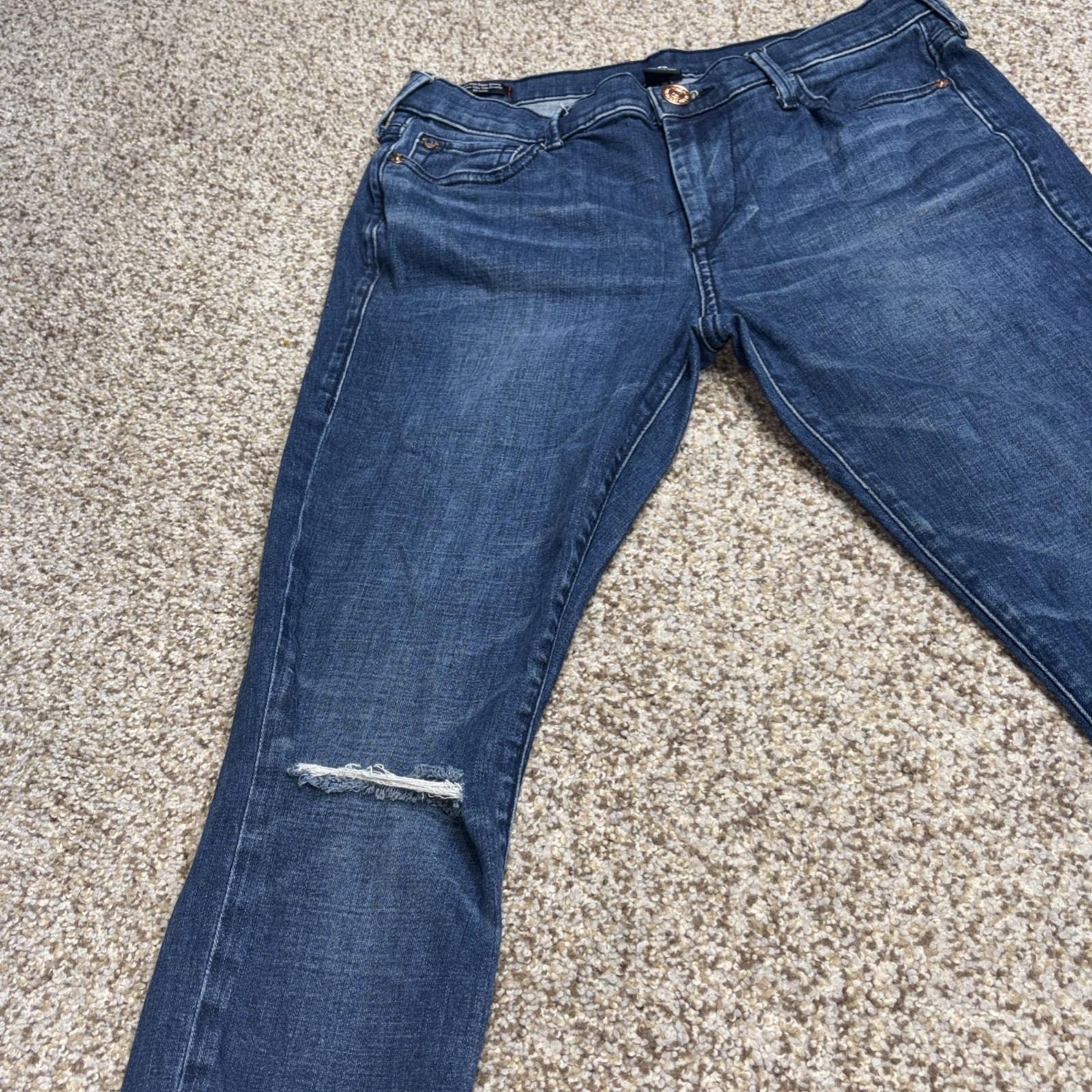 True Religion Halle Mid Rise Super Skinny Jeans Denim Size 28 Fits 29 X 28. Hole in both knees as showm in photos