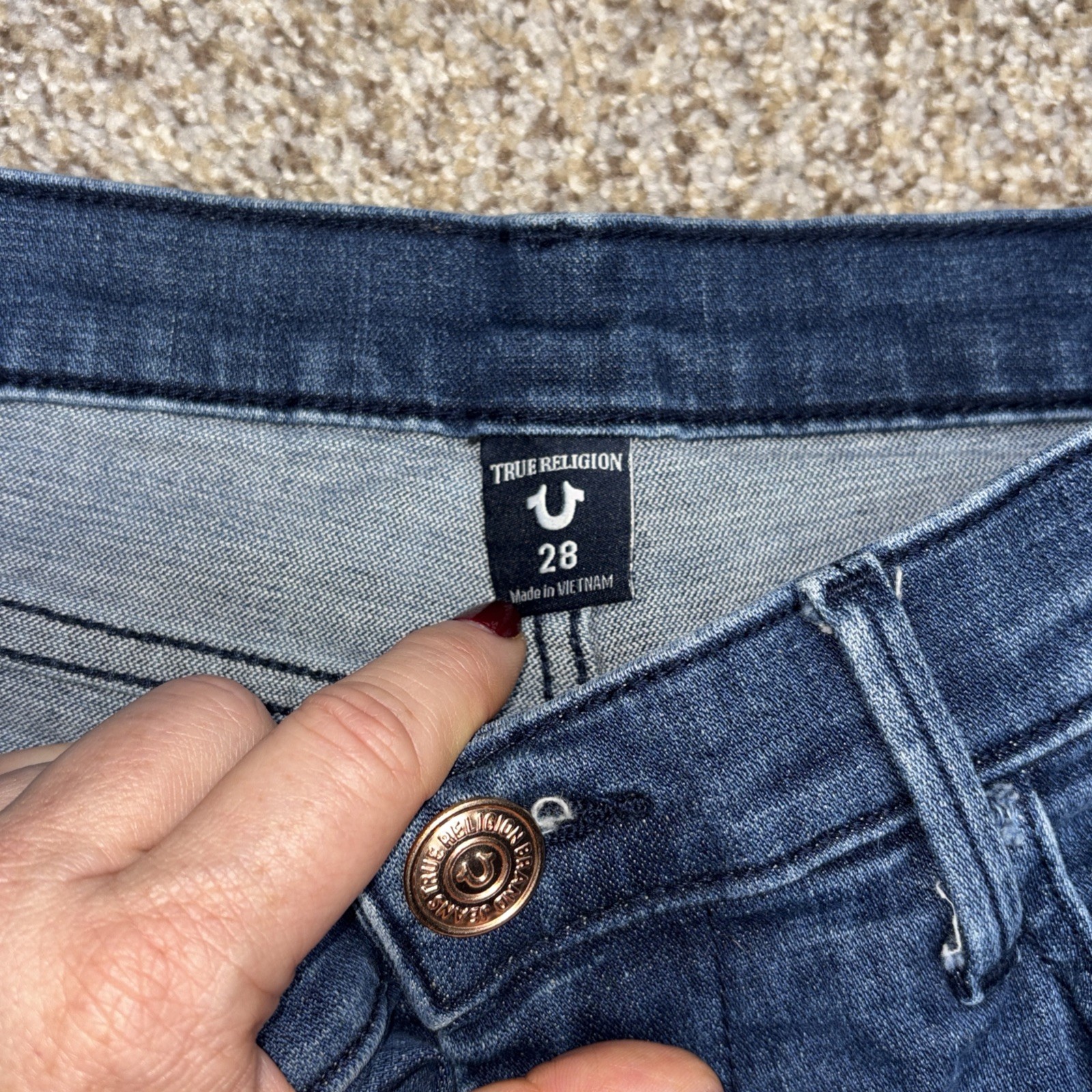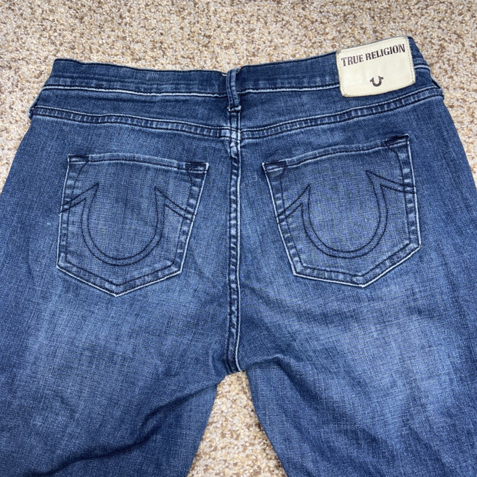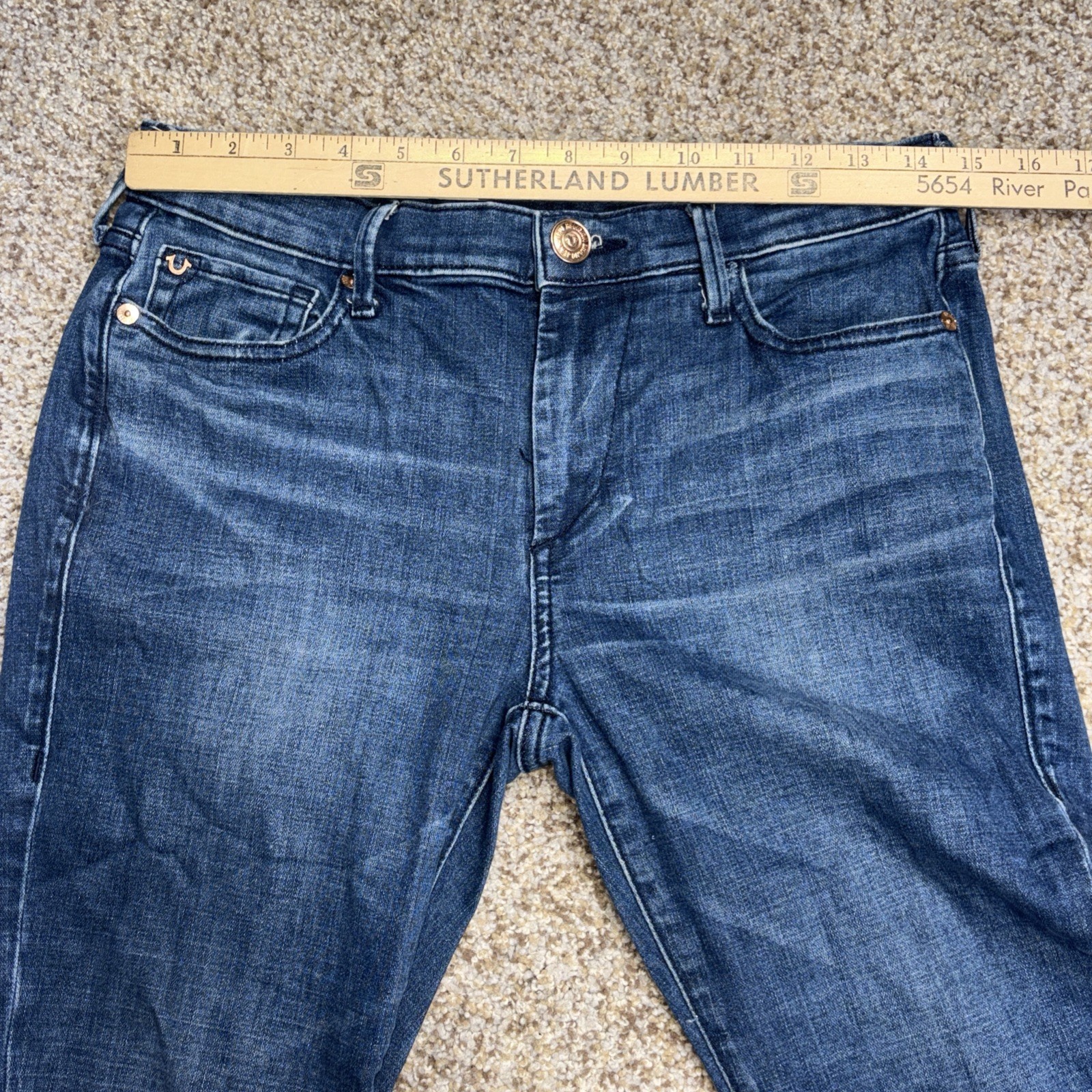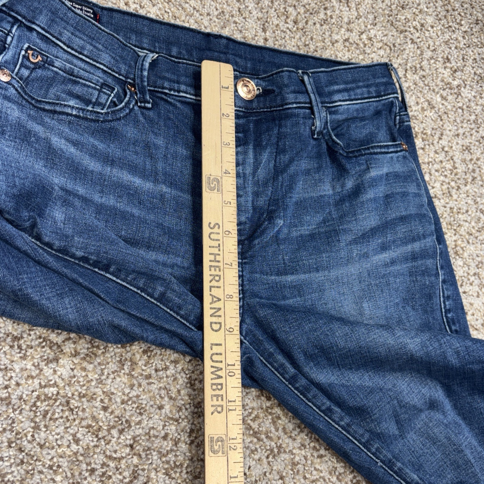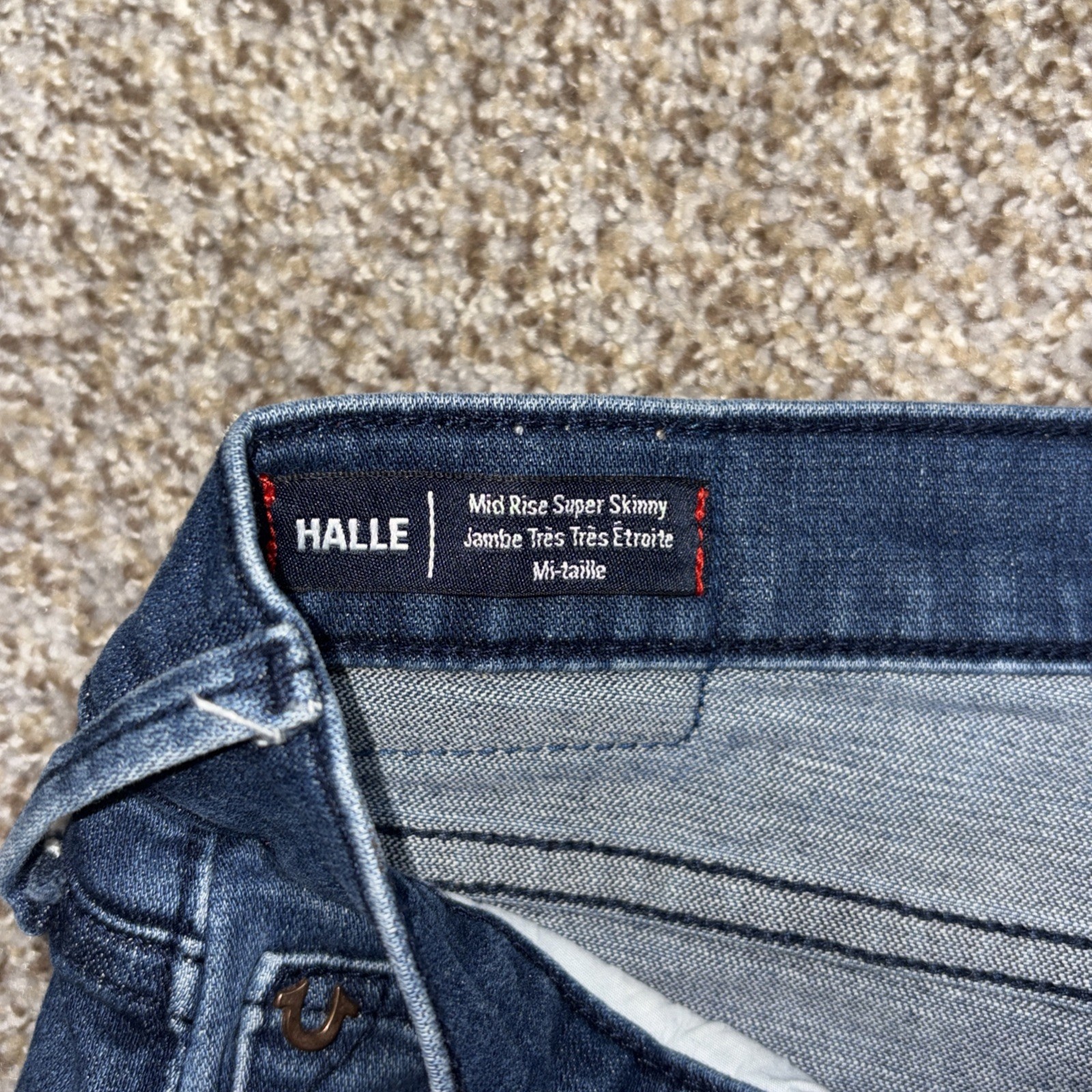 True Religion Halle Mid Rise Super Skinny Jeans Denim Size 28 Fits 29 X 28. Hole in both knees as showm in photos