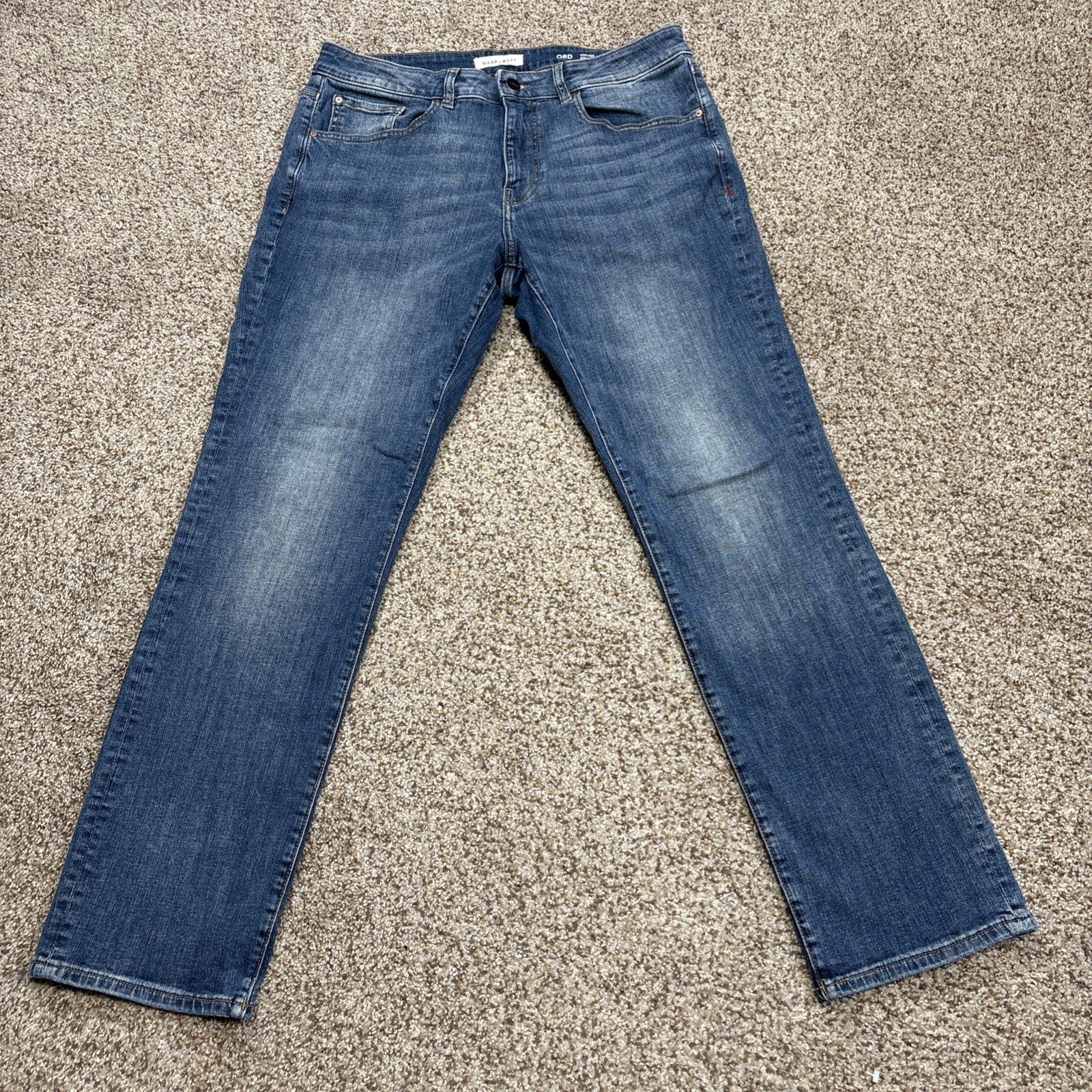 These Warp + Weft jeans are a fantastic find for those who appreciate a blend of style and comfort. With a classic straight fit and stretchy denim, they offer a comfortable wear for all-day adventures. The waist measures 34 inches and the inseam is 31 inches, making them a great fit for anyone looking for a versatile pair to add to their wardrobe!